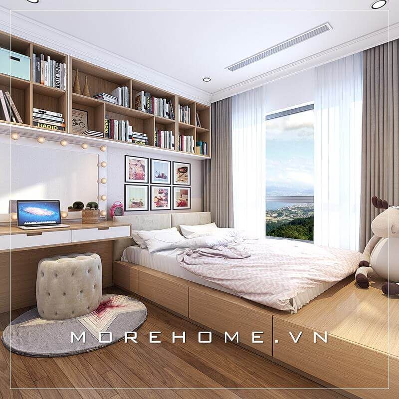 Mầu giường ngủ bệt có tap để thiết kế thêm ngăn kéo bằng gỗ công nghiệp cho nhà phốchung cư