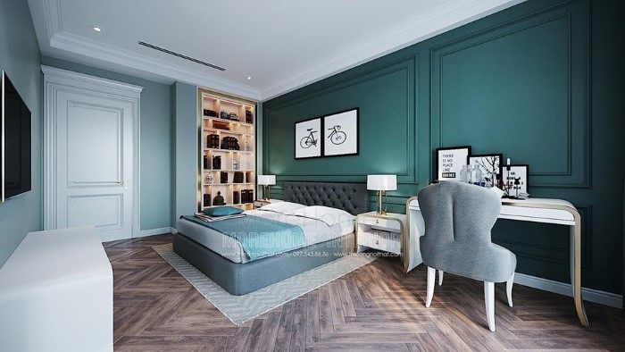 Giường ngủ bọc nệm màu xanh ngọc hiện đại mang tới những giấc ngủ ngon, nghỉ ngơi sau những giờ học tập và làm việc dài