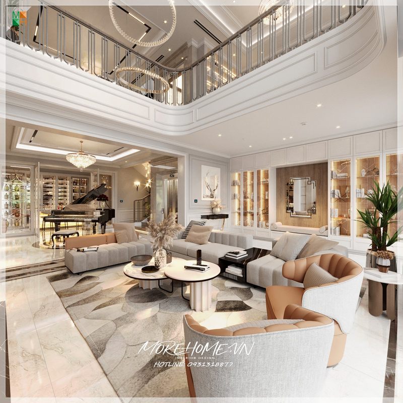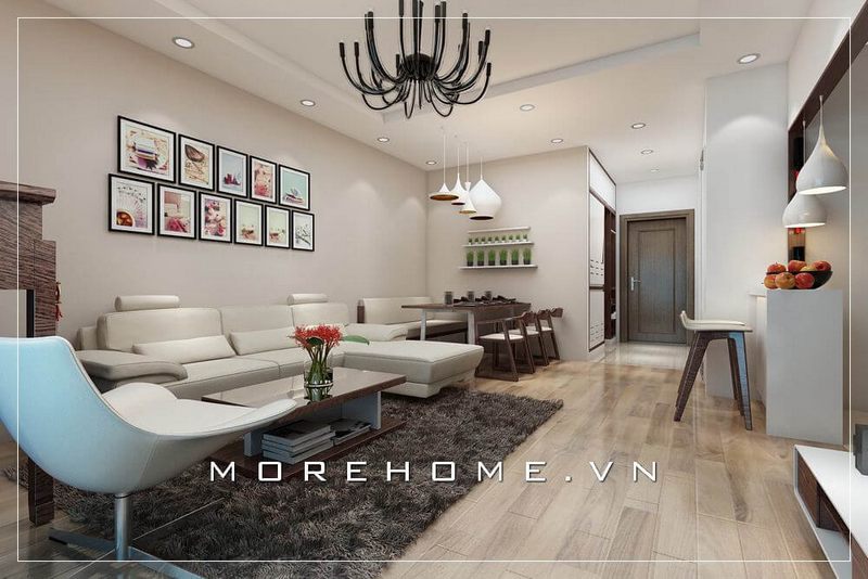 Sự sử dụng của tone màu trắng tinh tế cho không gian phòng khách chung cư đã tạo nên một cảm giác tươi mới và hiện đại cho căn hộ.